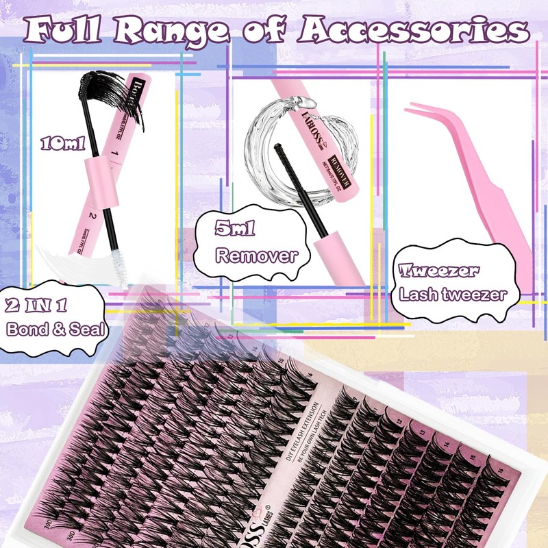 - 【Great Value DIY Eyelash Extension Kit】 The latest eyelash extension kit is here! Includes 280 clusters of fluffy and thick eyelashes, 10ml adhesive and sealant, 5ml eyelash remover and 1 eyelash tweezers. Fully meet your daily needs, save money, time and effort! Easily get luxurious eyelash extension effects.