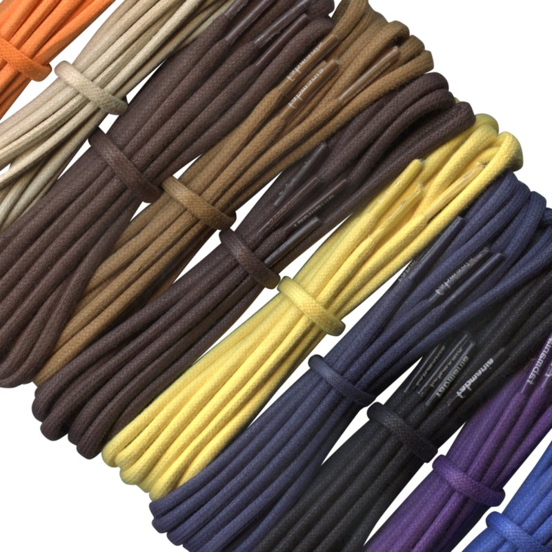 • Upgrade your buisness casual dress shoes or boots with these quality 3/3.5mm waxed round laces, a trusted replacement brand in the industry. Crafted from durable cotton, these laces are the perfect replacements for your worn-out laces