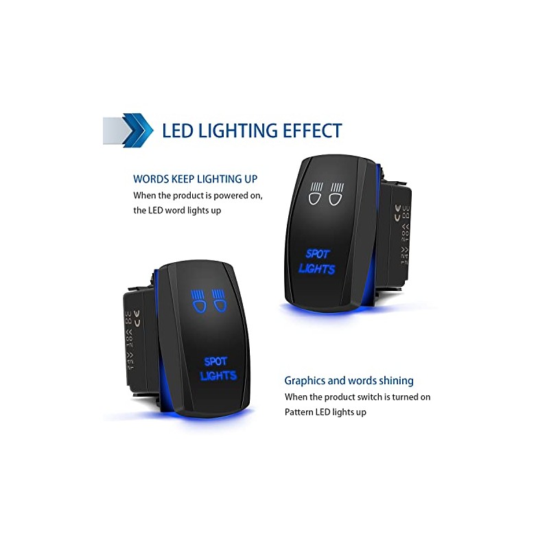 - [Wide Application]: Standard 5 Pin switch, rated at DC 12V/20Amp and DC 24V/10Amp, Fits for most car, SUV, ATV, UTV, 4X4, motorcycle, truck, Jeep, Wrangler, boat, yacht and other off-road vehicles.