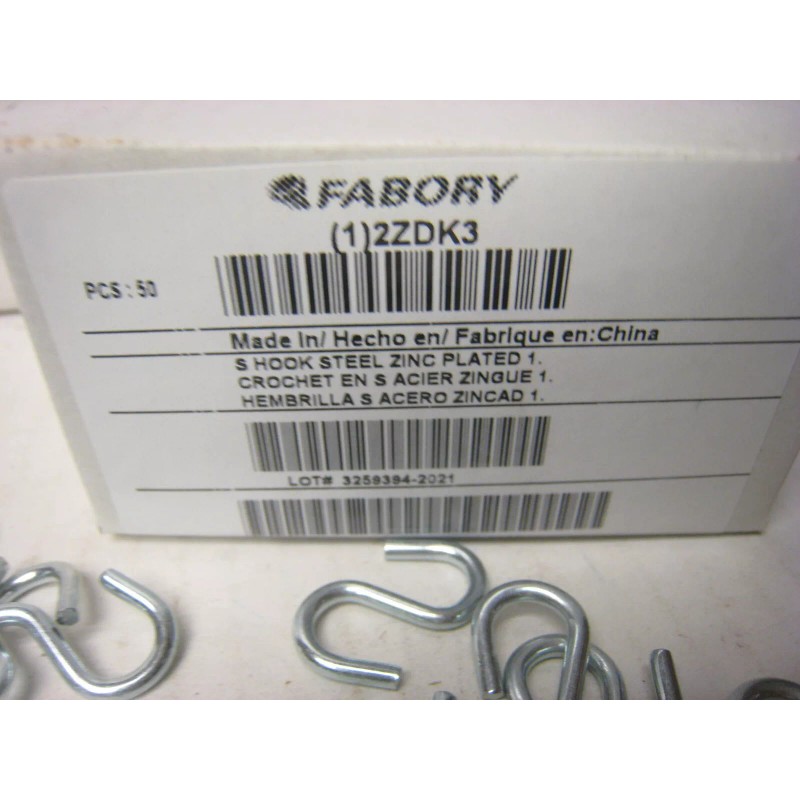 FABORY 2 -Boxes 50 pcs each = 100 pc FABORY 2ZDK3 S Hook Steel Zinc Plated Pack of 50