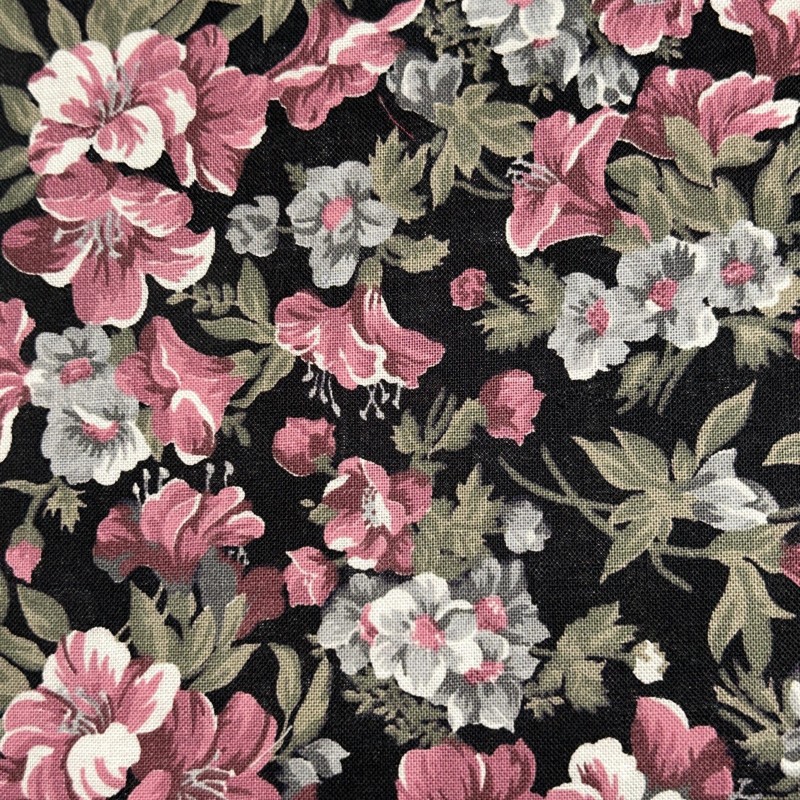 The Ozark Calicos Flowers on Black 1/2 Yard Fabri-Quilt Cotton Fabric is a versatile and colorful material perfect for quilting projects. Featuring a beautiful multicolor floral theme on a black background, this fabric adds a touch of charm and elegance to any quilt. With a width of up to 45 inches and sold by the half-yard, this cotton fabric from Fabri-Quilt is ideal for creating intricate and vibrant quilts that will brighten any room.
