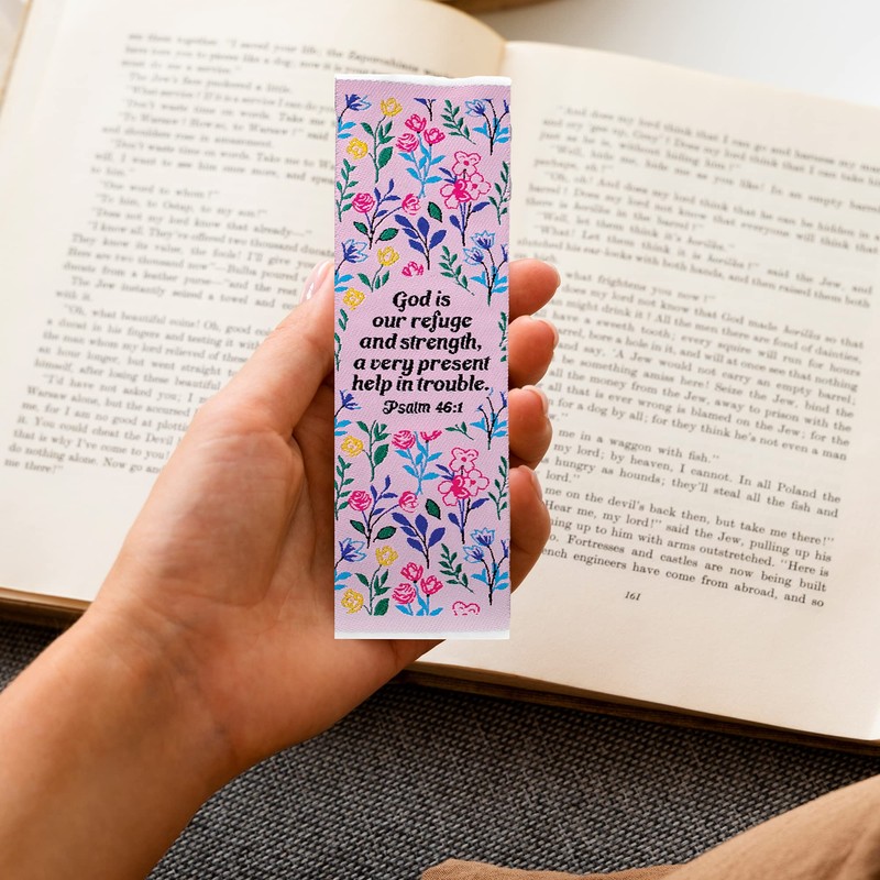 Fabric Bible Bookmark with Bonus Tassel Bookmark - Bulk Pack of 4 - Psalm 46:1: God is Our Refuge and Strength Bible Book Markers - Christian Bookmarks for Women - Religious Bookmarks