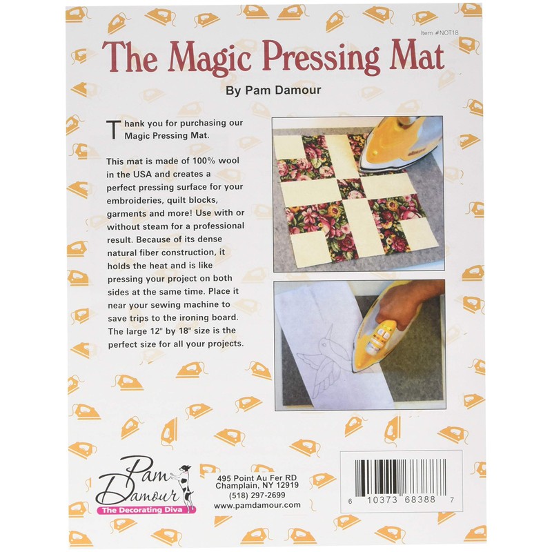- The Magic Pressing Mat is made in the USA with all natural wool fibers making it a perfect pressing surface for your embroideries quilt blocks garments and more. Its dense natural fiber construction allows it to retain heat as if you were pressing from both sides at one time. Keep it near your sewing machine top and save yourself a few trips to your ironing board. Size: 12'' x 18"