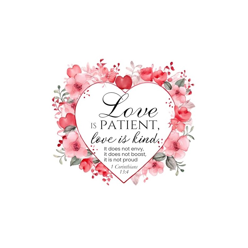 Fabric Panel 14"x14" 1 Corinthians 13:4 Scripture 100% Cotton Quilting Sewing Panel Square R2000
