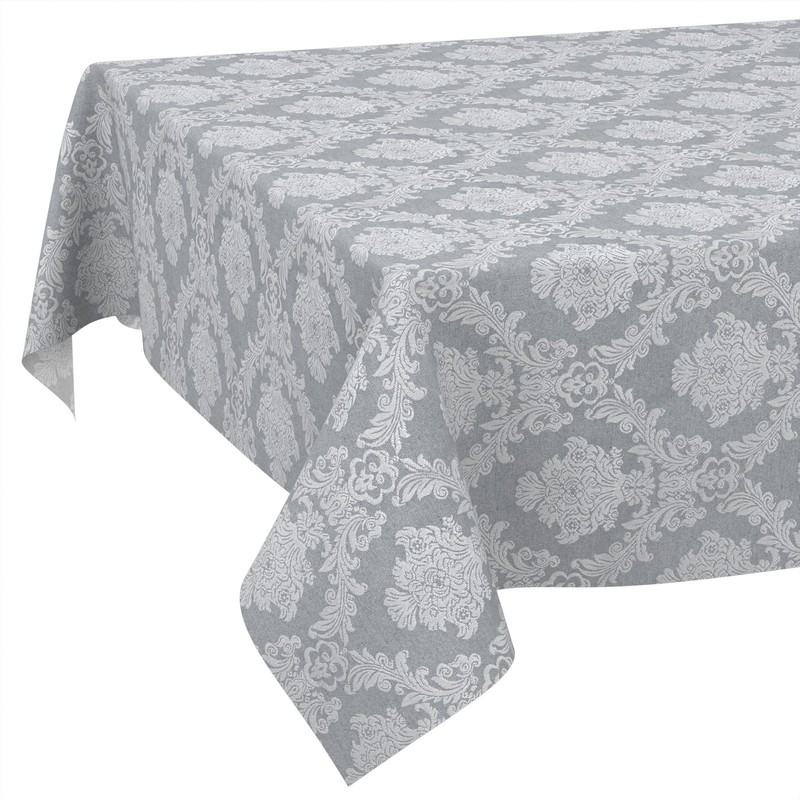 Fabric Tablecloth, Textile Table Linen, Cotton Polyester, Washable, Plain Ornamental Damask Jacquard Fabric, Washable, Baroque Grey, 100 x 140 cm, Cut Edge