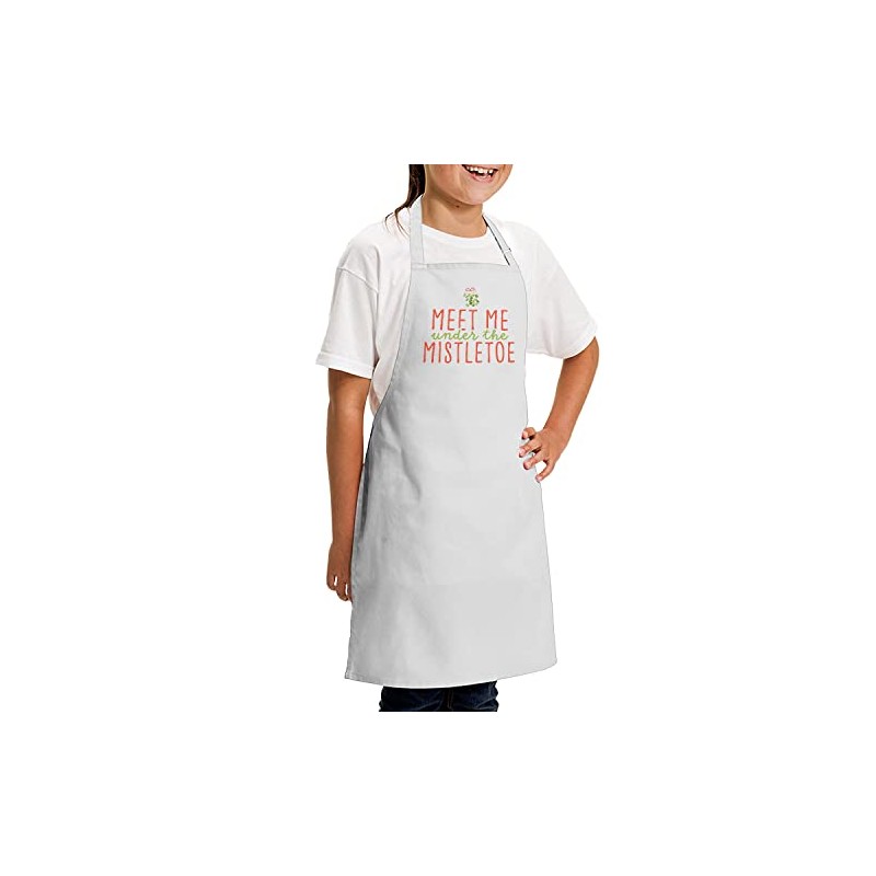 Fabulous Children's Kitchen Apron - Paint Meet Me Under the Mistletoe Noel Hiver Cadeau Père Noel - Premium Quality, White