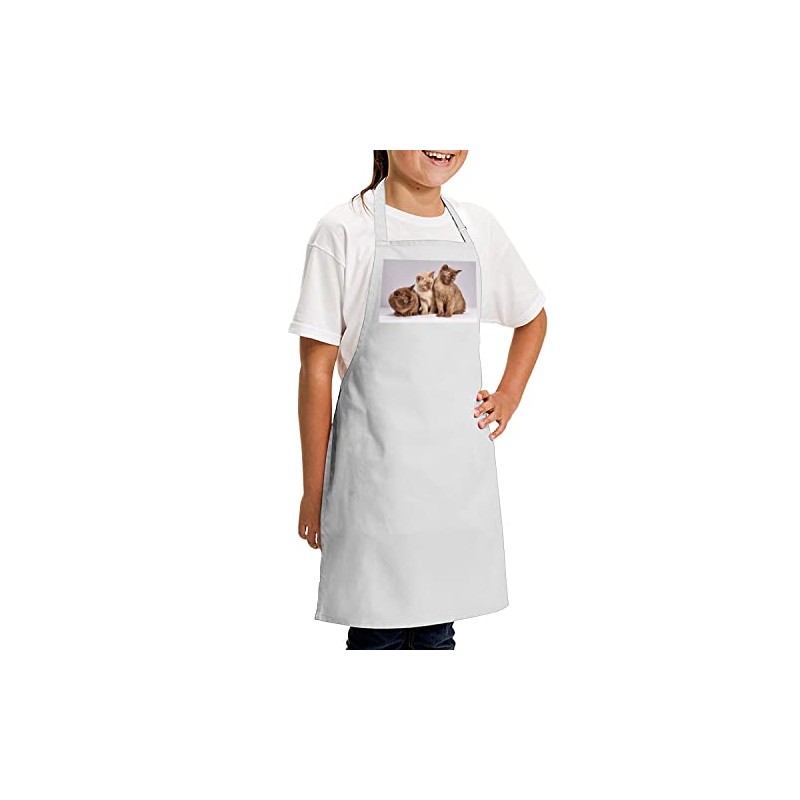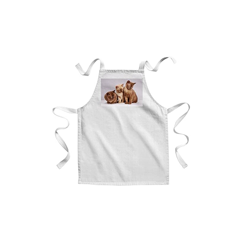 Fabulous Children's Kitchen Apron - Painting Bebe Chats Siam Persian Longhair Kitten Trio Cute - Premium Quality, White