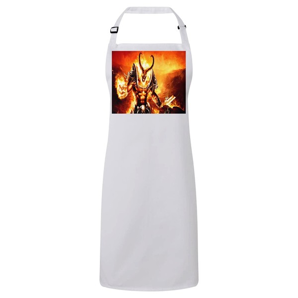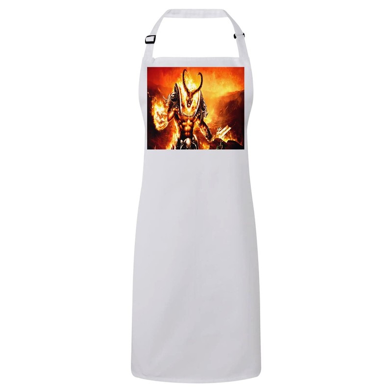 Fabulous Premium Kitchen Apron Demon Devil Satan Fire Video Games RPG, White