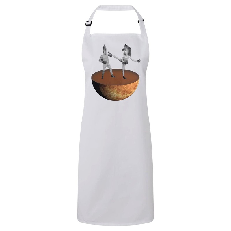 Fabulous Premium-Küchenschürze Weiß Fish Fighters Fisch Boxen Collage Kunst Surrealismus