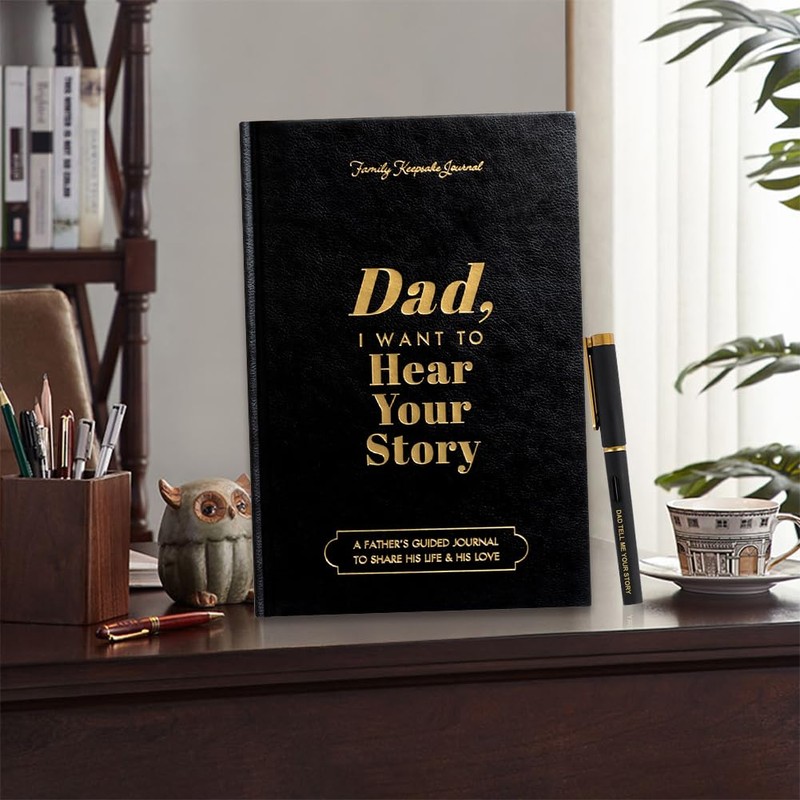 - Family Keepsake Journal:Dad Birthday Gifts featuring a black leather memory journal and matching black pen (DAD TELL ME YOUR STORY). Perfect presents for dad from daughter, ideal for preserving cherished family stories and enhancing father-child communication.