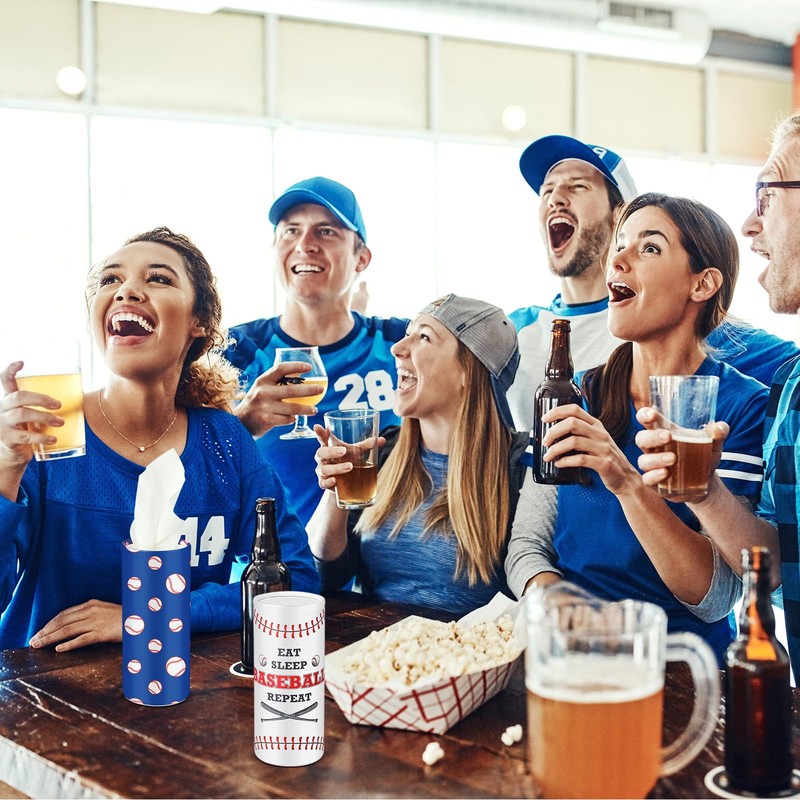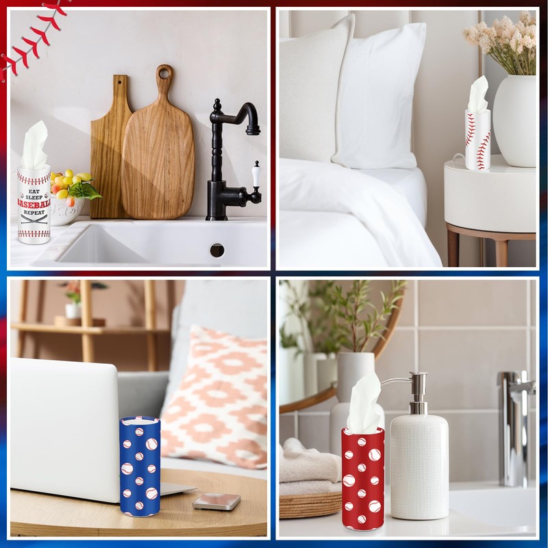 - Baseball Theme Design: the tissue holder for car adopts a baseball theme design, including baseball patterns and "EAT SLEEP BASEBALL REPEAT" phrase, which can add a lively atmosphere to your car or baseball theme party, keeping you in a good mood; It adopts a cylindrical design and can be placed upright without taking up too much space in the car