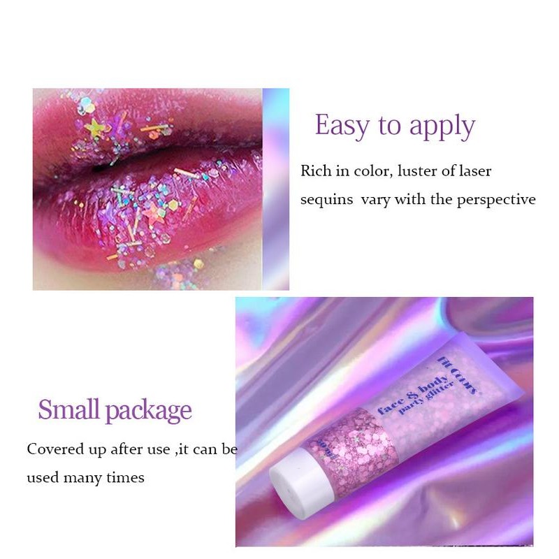 The lightweight, skin-safe formula applies effortlessly—no glue required—and dries quickly for long-lasting wear. When the night is over, simply wash it off with soap and water for easy removal. Made with gentle, cosmetic-grade ingredients, this glitter gel is suitable for all skin types and safe for both skin and hair. Whether you’re aiming for a radiant festival glow or a touch of sparkle in your daily style, this gel is your go-to for fun, creative, and dazzling makeup looks.