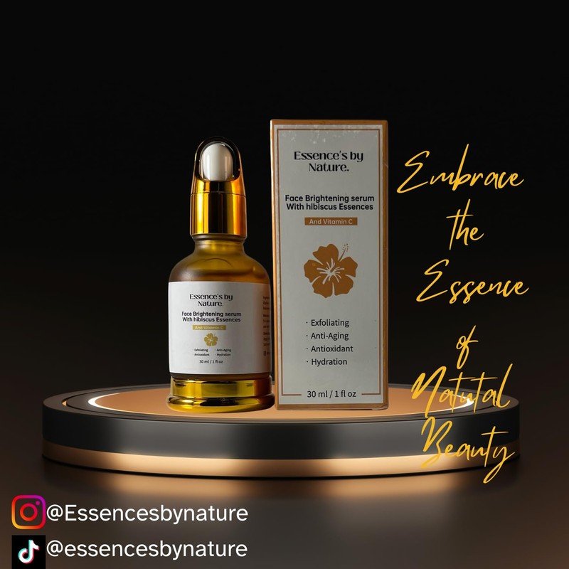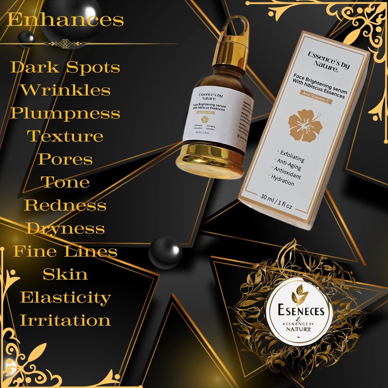 Face Brightening serum With Hibiscus Essences And Vitamin C- Moisturizes, hydrates the skin, minimizes pores, improves skin tone and firmness, reduces signs of aging, inflammation fades dark spots.