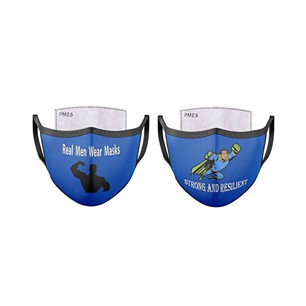 Face Cover Mask (Set of 2) Unisex with 6 Removable Replaceable Carbon Activated Filters with Cute Prints (Blue-Real/Strong)
