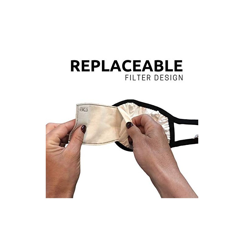 • 2 MASKS & 6 REPLACEABLE FILTERS: Each set comes with 2 trendy, stylish, fashionable, comfy masks and 6 replaceable activated carbon filters. Comfortable elastic, ear loops