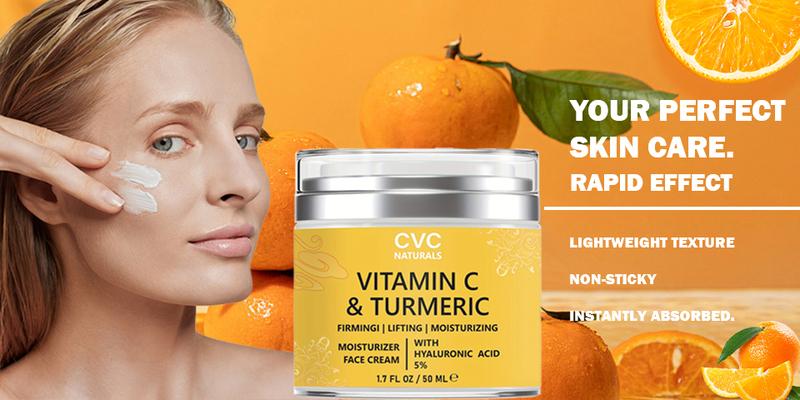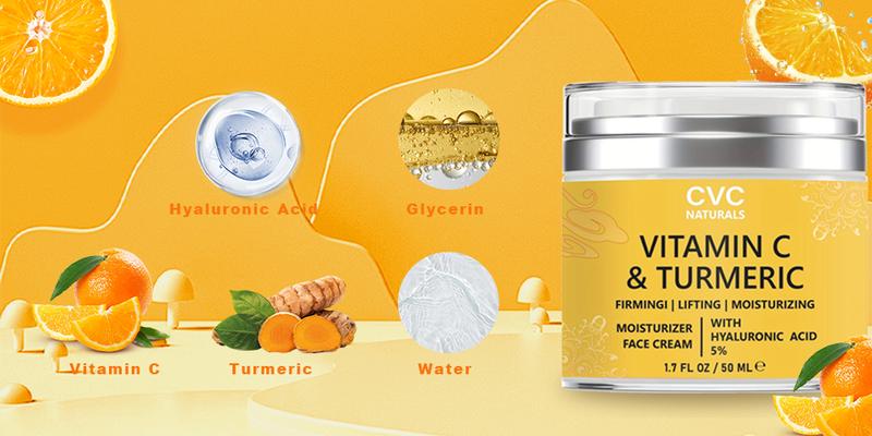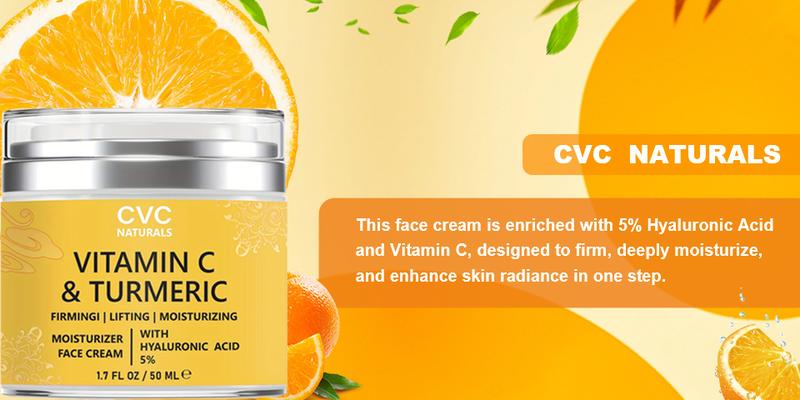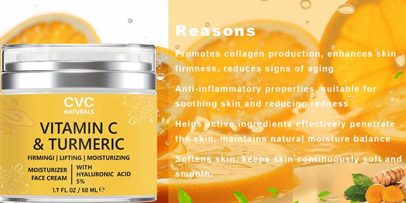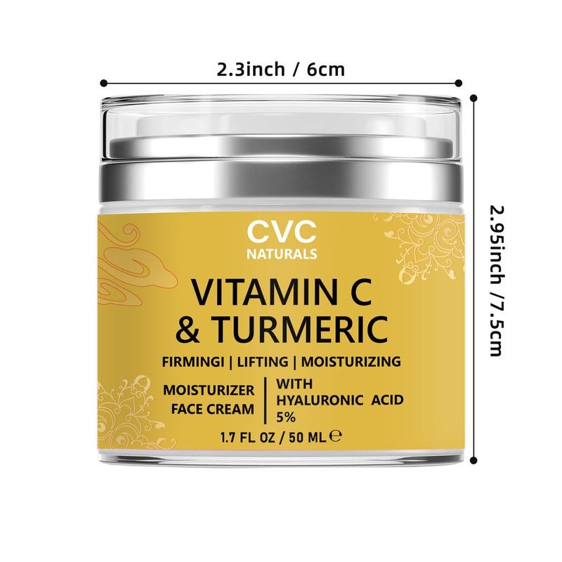 Face Cream with Vitamin C and Turmeric - Deep Hydration, Firming, Lifting, and Moisturizing, with 5% Hyaluronic Acid (50 ML) Skincare Moisturizer moisturizer face