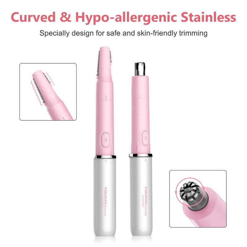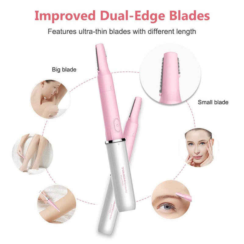 Face Eyebrow Nose Ear Hair Trimmer by TOUCHBeauty, All-in-ONE Hair Remover for Women & Men, Dual Blades Shaver Battery Powered Upgraded Version TB-1458(White)