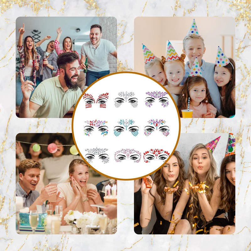 - Long-Lasting Adhesion: These face gems for women are designed with a strong adhesive that ensures they stay in place throughout the event; The waterproof feature makes them resistant to sweat and tears, perfect for long hours of wear during music festivals and parties.