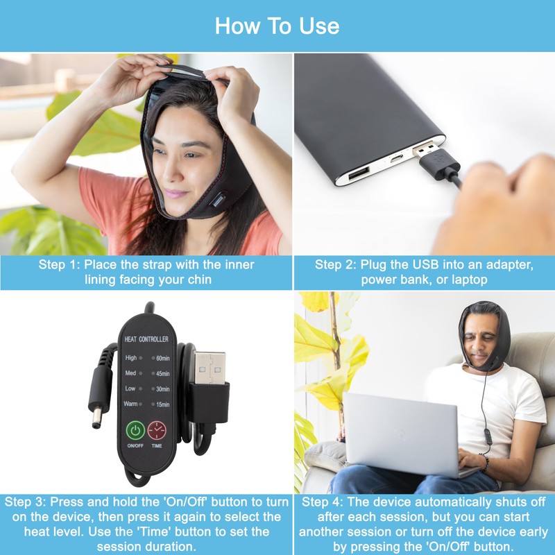 You can customize your experience with four heat settings—from a cozy warm to satisfyingly hot—and choose the perfect session length, from 15 to 60 minutes. And don't worry about dozing off—it has an automatic shut-off feature for total peace of mind. Plus, it's energy-efficient, meaning it's not only kind to your jaw but also to your electricity bill!