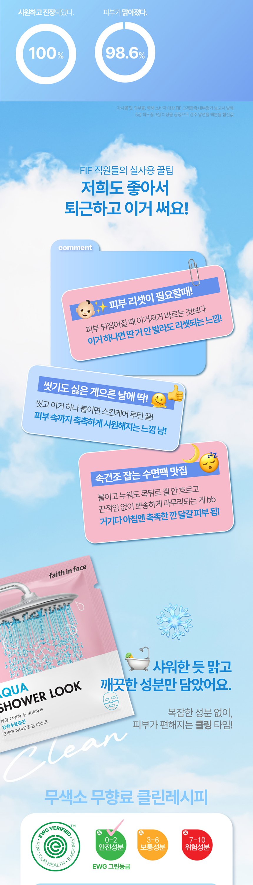 페이스인페이스 아쿠아샤워룩 하이드로겔 마스크(수분)