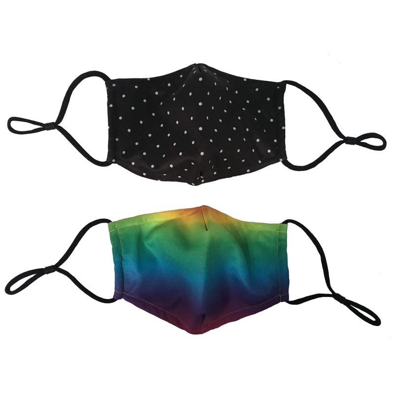 FACE MASK ADJUSTABLE REUSABLE DOUBLE LAYER WITH FILTER POCKET (PACK OF 2) (BLACK, RAINBOW)
