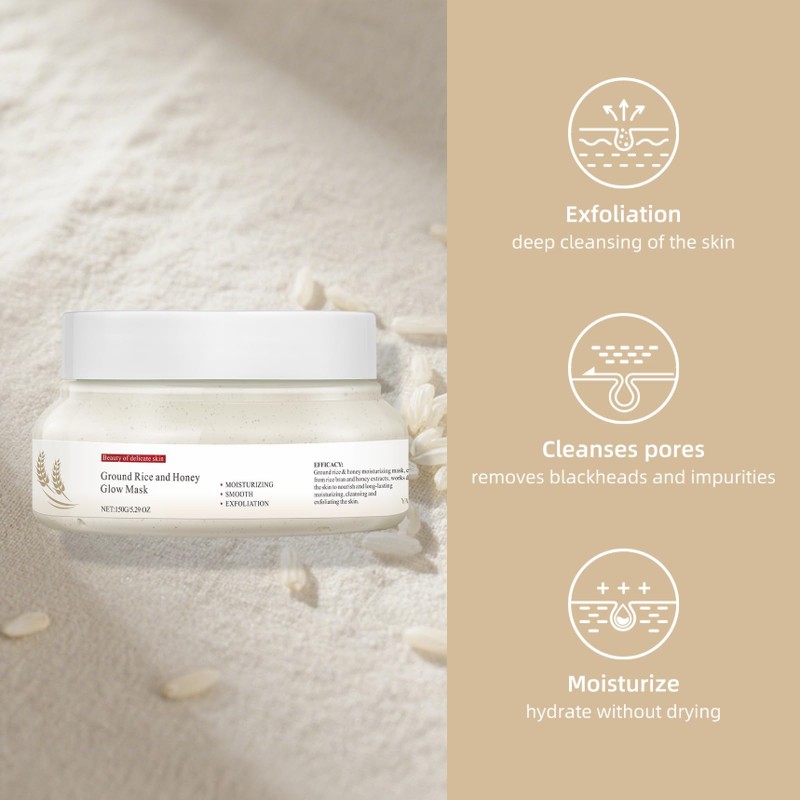 Face Masks Skincare, Ground Rice and Honey Glow Mask, Moisturizing & Hydrating Clay Mask, Deeply Cleansing Skin, Exfoliating and Blackheads, Cleanses Pores