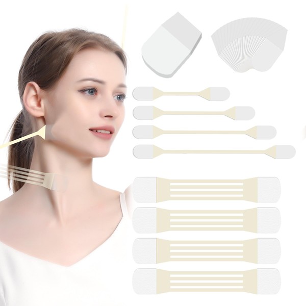 Face Neck Lifting Tapes, Instant Fack Neck Lifting Stickers Adhesive Neck Face Lift Patch Tools for Lifting Face Neck Wrinkles Women Skin Care(8pcs Elastic Bands, 40pcs Face Tapes)