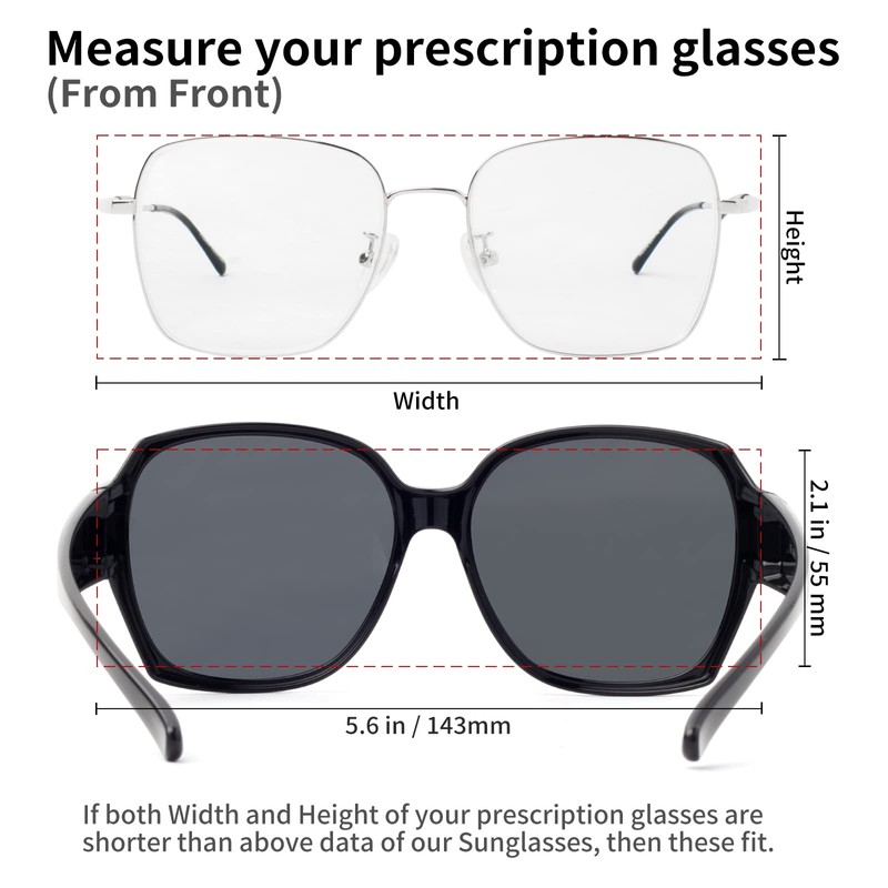- 【Over Glasses Sunglasses】: These sunglasses to go over glasses are specially designed for those who wear prescription glasses or reading glasses, suitable for most face shapes and glasses shapes. These fit over sunglasses can surely also be worn alone.