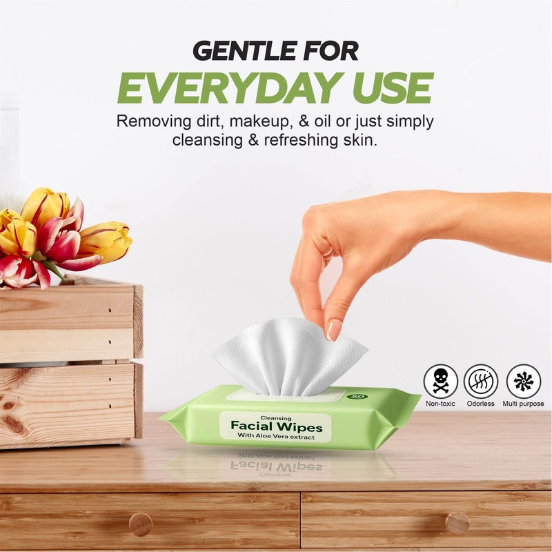 - Facial Wipes Good Value For Money You Will Get 100 Pcs In Pack Of 2 Face Wipes Size 18 x 12.5 Cm Face Wipes Makeup Wipes Made From Aloe Vera Extracts Provides Hydration And Keeps Your Skin Moisturised You Can Clean Your Face With Facial Wipes Travel Wipes Are Suitable For All Skin Types Dry Skin Mature Skin Sensitive Skin