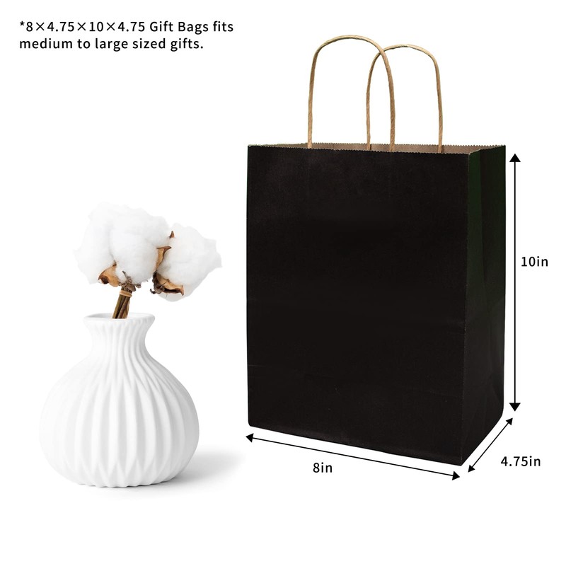 - Black Gift Bags - With an 8-pound carrying capacity, 100GMS thickened kraft paper bag has no stray glue and a flat solid bottom can stand easily. The bag is one piece, the bottom is strong and durable, very durable