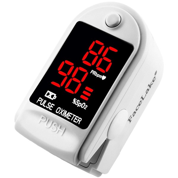 FaceLake FL400 Pulse Oximeter with Carrying Case, Batteries, Neck/Wrist Cord - White