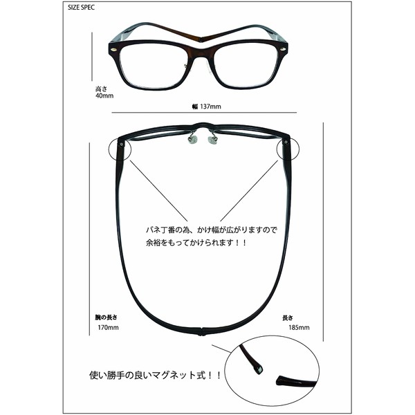 - 使い勝手のいいデザインと便利な首掛け型老眼鏡!日本人の骨格に合わせて設計したフレームとバネ丁番でフィット感抜群!