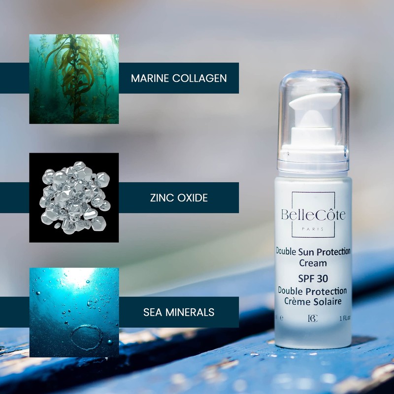 - ✅ 𝐔𝐧𝐢𝐬𝐞𝐱 𝐏𝐫𝐨𝐝𝐮𝐜𝐭: Double sun protection cream by BelleCôte Paris is a Marine sun filters (Chlorella and Spirulina) with powerful peptides. This sunscreen is for both men and women. The mineral sunscreen for the face is a skin care product that works wonders overall skin types.
