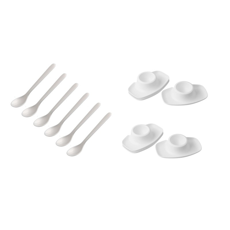 FACKELMANN 12-Piece Breakfast Set Egg Spoon White with Egg Cup White High-Quality Plastic Ideal for Breakfast Table