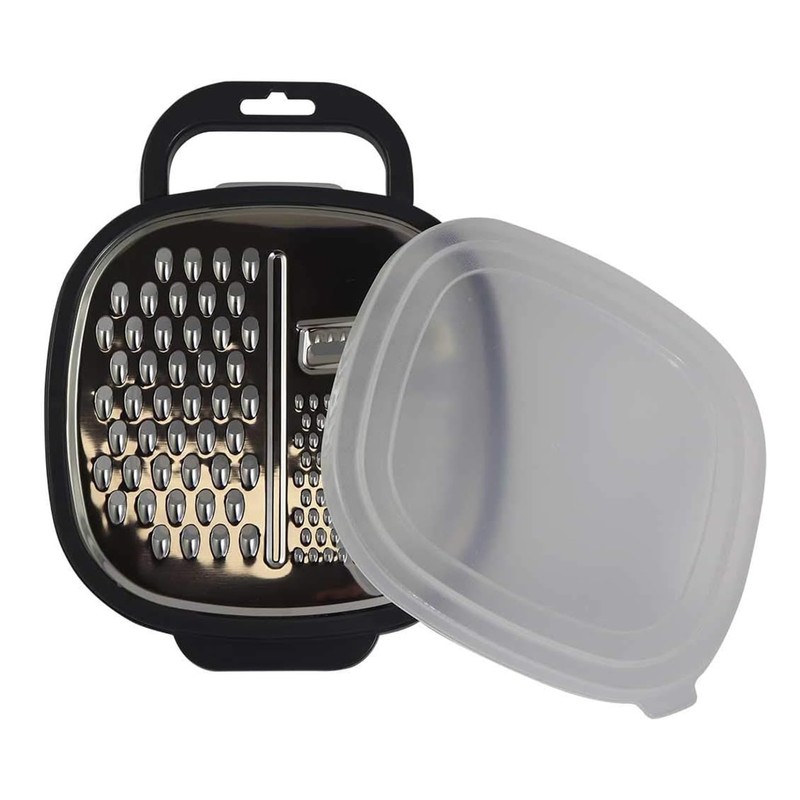 Fackelmann 40906 Rectangular Grater with Container, 25 x 19 x 6 cm, Sybaris (Semi-Transparent White and Grey), Quantity: 1 Piece, Stainless Steel, Plastic