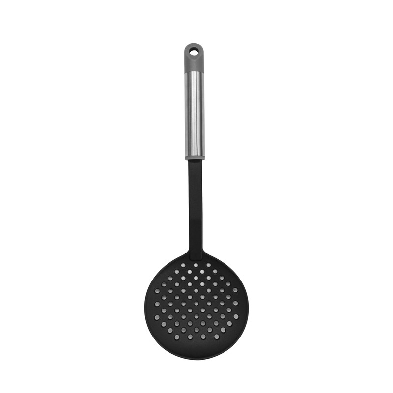 - 1 x Fackelmann MODE Skimmer, Food Strainer, PBT Plastic Non-Stick Function Head & Stainless Steel Handle with Hanging Loop, 34x11.5x3cm, Black, Grey & Silver