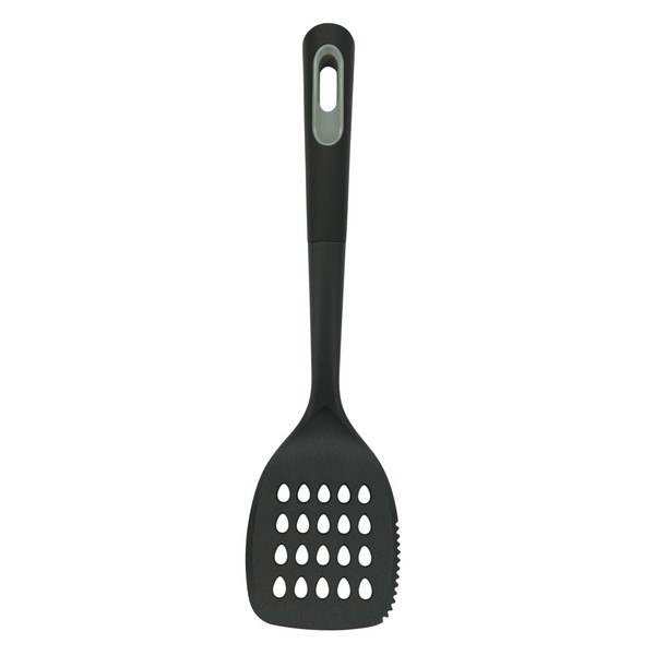 Fackelmann PRO Slotted Turner, Multi Functional, Cooking Spatula, PBT Function Head, Soft Touch Handle, 34.5x8.8x6cm, Black & Grey