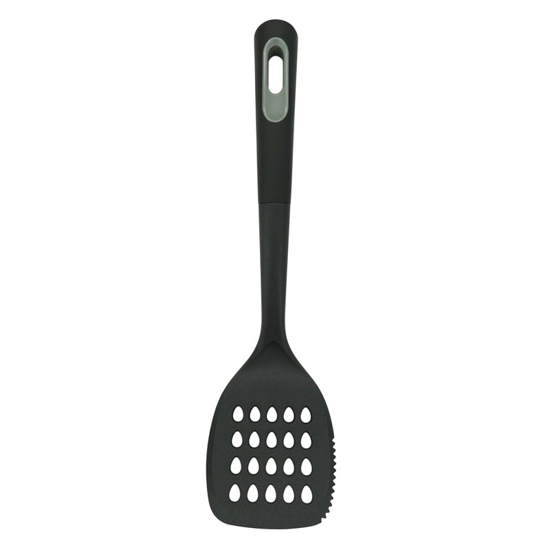 • 1 x Fackelmann PRO slotted turner, PBT function head & TPR handle, Size: 34.5x8.8x6cm, Colour: black & grey