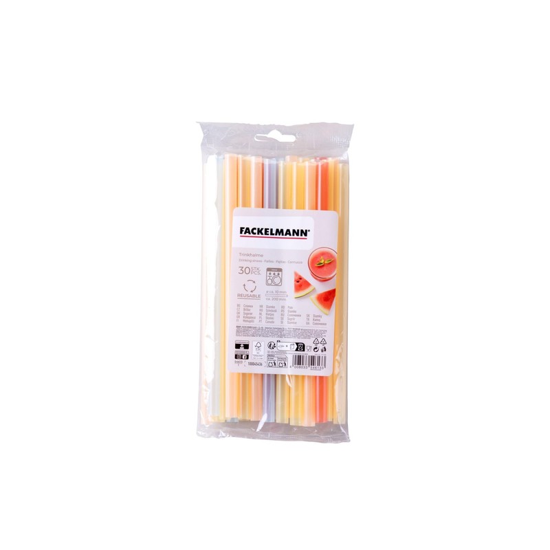 FACKELMANN Reusable Drinking Straws - Reusable Straws for Smoothies, Milkshakes and Bubble Tea, 30-Piece Set - Dishwasher Safe, Blue, Apricot, Pink, Yellow