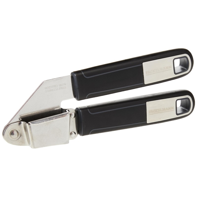 - 1 x Fackelmann SENSE Garlic Press, Plastic & Stainless Steel Handle, Zinc Plated Function Head, 3.5x7.9x22cm, Silver & Black