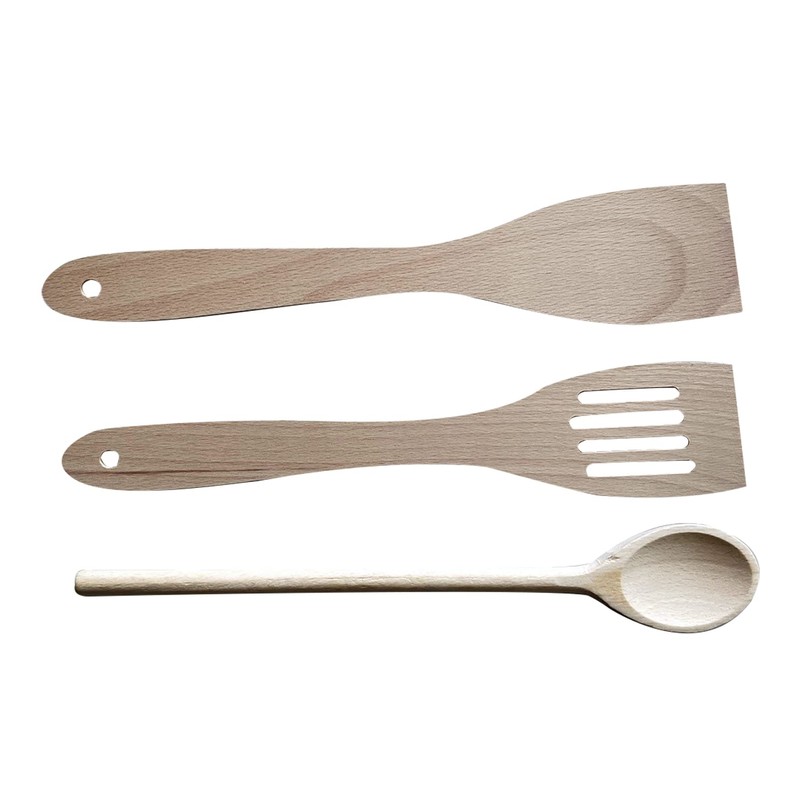 - Fackelmann Set consists of 2 spatulas and 1 spoon made of beech wood.