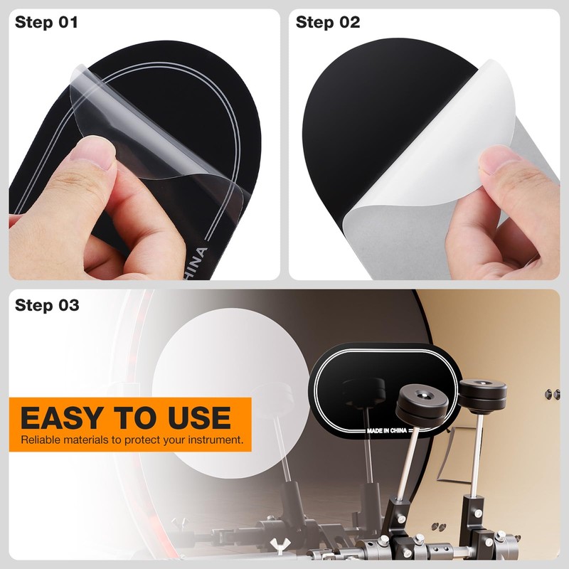 • 【Quick & Clean Application】 - Features a peel-and-stick adhesive backing for instant installation, and removes cleanly without leaving sticky residue on your drumhead.