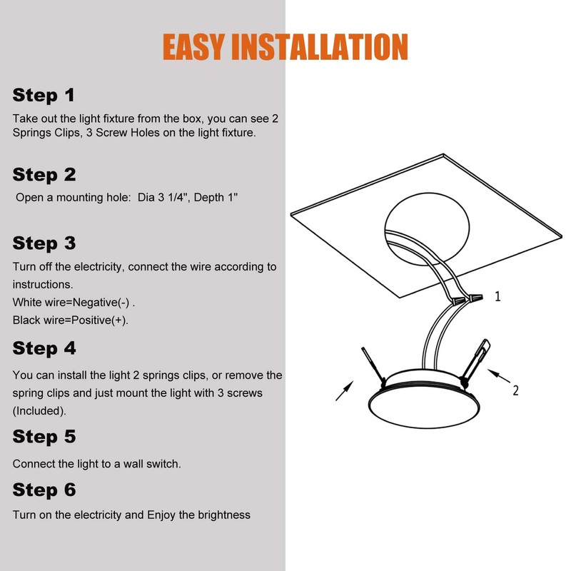 - 【Recessed Mount Design】Diameter(Inch): 4-1/2''; Cut (Inch): 3-1/4''; Depth (Inch): 1''. Please check the diameter and mounting hole before order. Recessed Mount Designed Provide Easy and Safe installation, you can Install with Two Springs or Screw Holes (3 Screws Included). Manufacturer Part Number is DLFST4-008. We Have Got the Design Patents and Related Quality Certificates