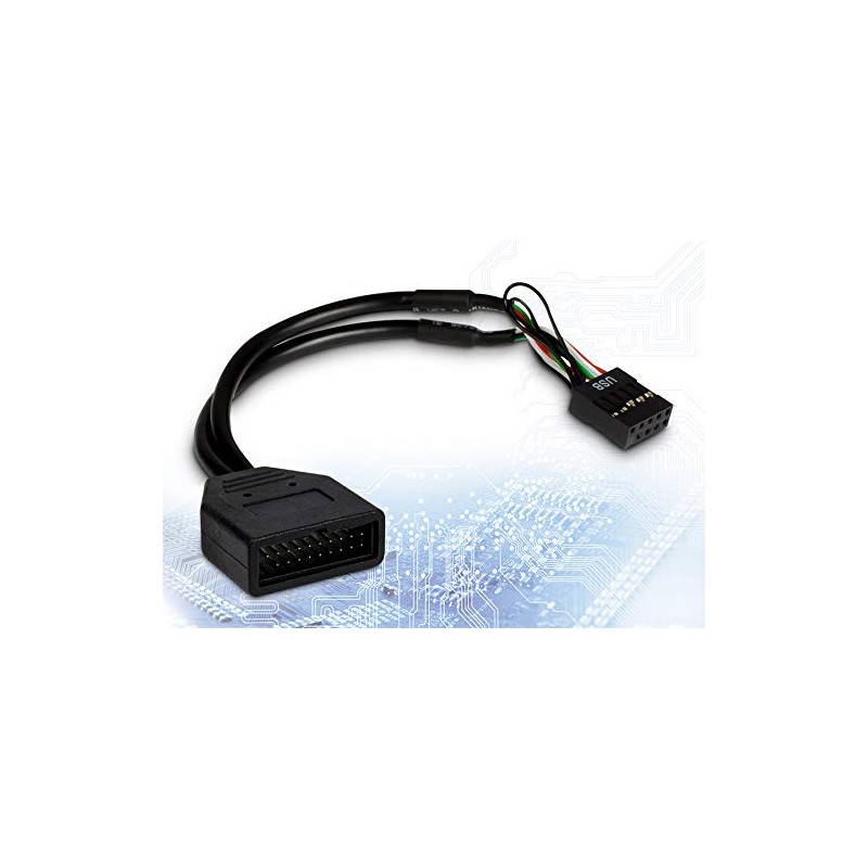 - This adapter allows a 19-pin USB 3.0 front port to be plugged into a 9-pin USB 2.0 connector onboard.