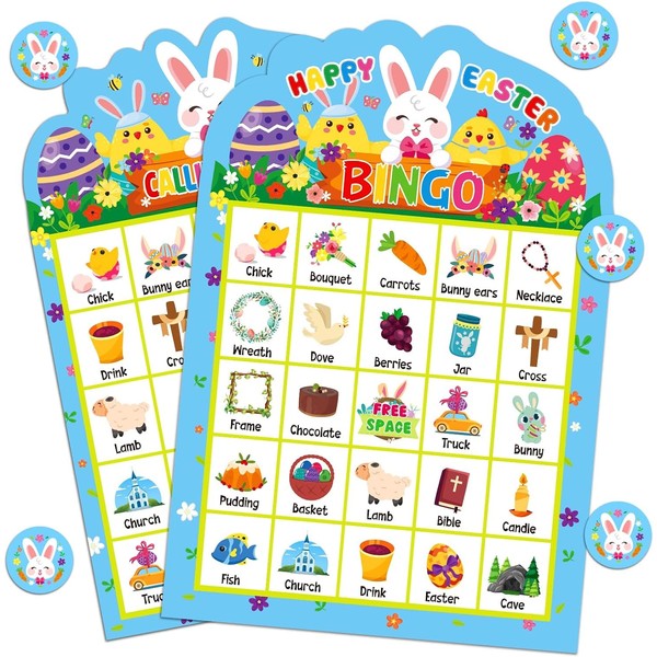 - 【Easter Bingo Cards for Kids】: Easter bingo cards include 26pcs player cards,1pcs calling card sheet,1 sheet of how to play the bingo card, and 26 sheets of easter egg stickers in a package.