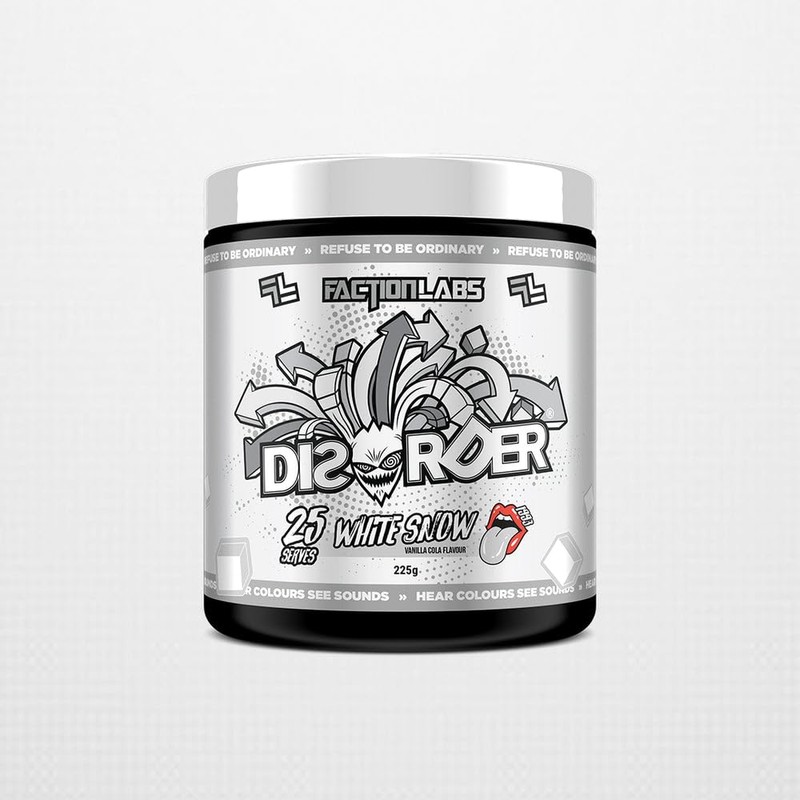 Faction Labs Disorder Original Pre Workout Powder, White Snow, Sugar Free Caffeinated Gym Supplement, 25 Serves, 225g