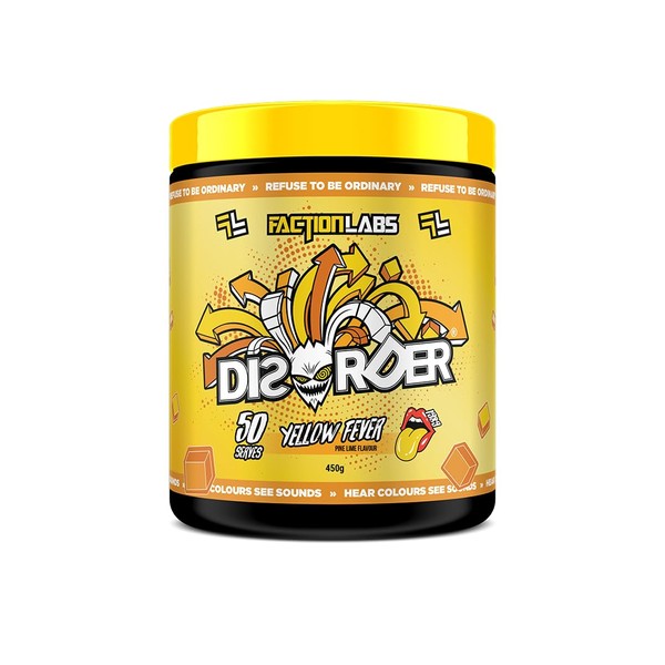 Faction Labs Disorder Original Pre Workout Powder, Yellow Fever, Sugar Free Caffeinated Gym Supplement, 50 Serves, 450g