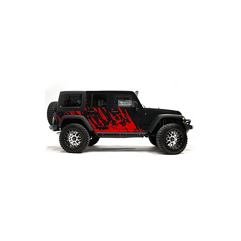 Factory Crafts Mud Burst Graphics Kit Vinyl Decal Wrap Compatible with Jeep Wrangler 4-Door 2007-2016 - Dark Red