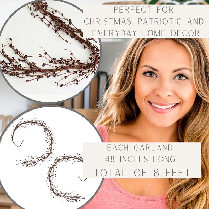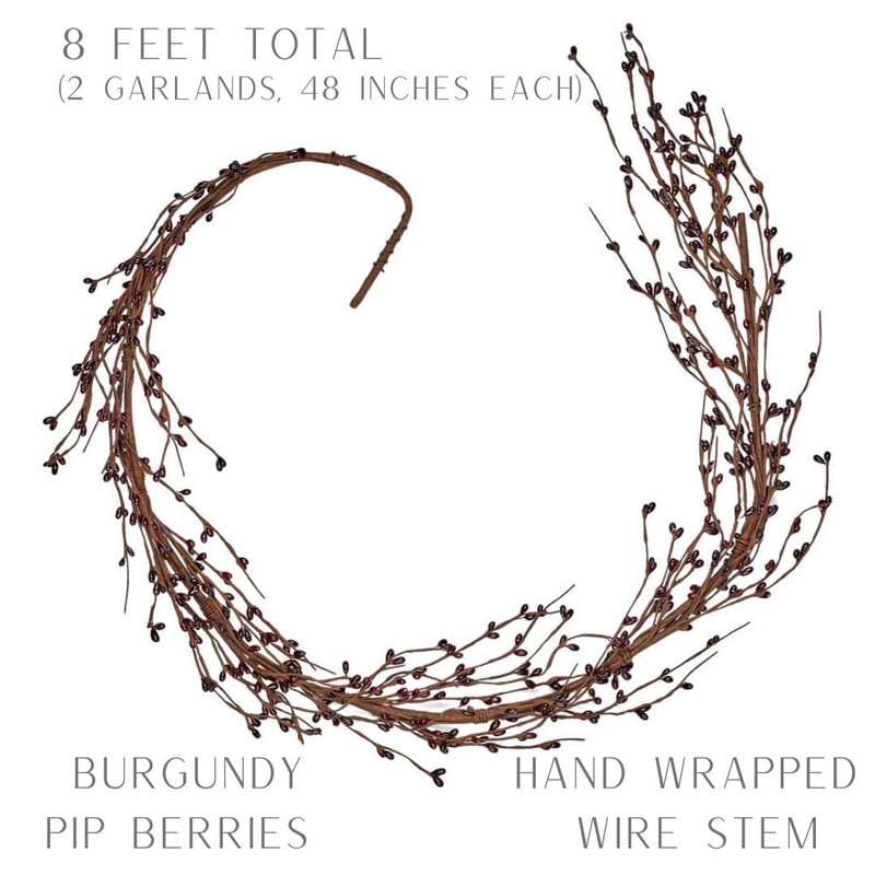 Factory Direct Craft Burgundy Pip Berry Table Runner Mantel Garlands Set of 2 - Pip Berries for Christmas, Patriotic and Everyday Primitive Decor (48 inches Each, Total 8 Feet Long)
