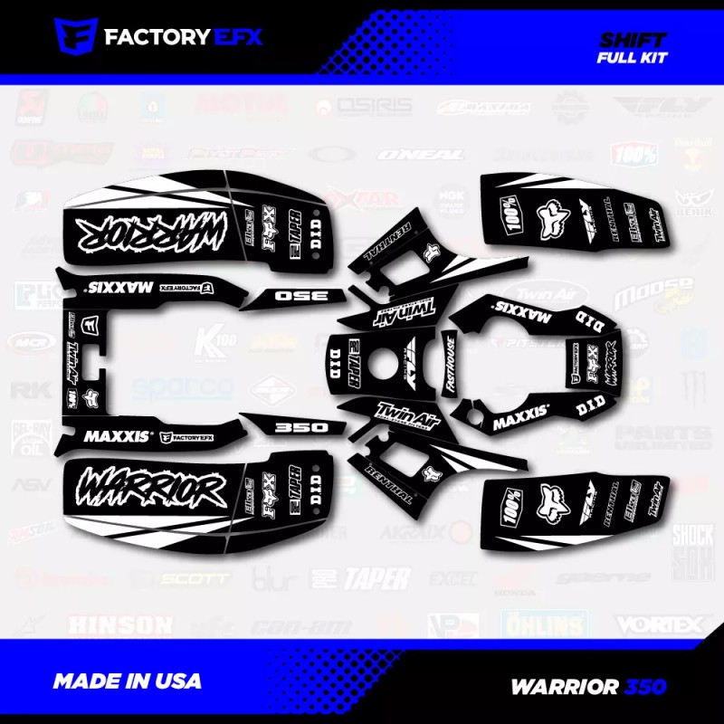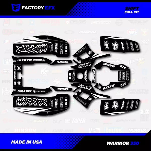 Factory EFX Black & White Shift Racing Graphics kit fits Yamaha Warrior 350 87-04 Decals